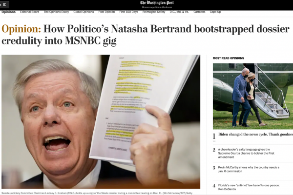 In a February, 2020 article headlined “How Politico’s Natasha Bertrand bootstrapped dossier credulity into MSNBC gig,” Wemple described how she was rewarded over and over for “journalism” that would be regarded in any healthy profession with nothing but scorn: