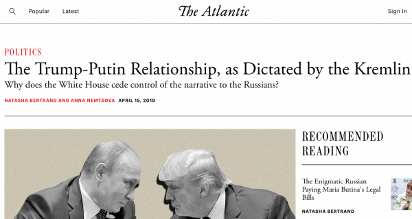 Bertrand’s career began taking off when, while at Business Insider, she abandoned her obsession with Russia’s role in Syria in 2016 in order to monomaniacally fixate on every last conspiracy theory and gossip item that drove the Russiagate fraud during the 2016 campaign and then into the Trump presidency. Each month, Bertrand produced dozens of Russiagate articles for the site that were so unhinged that they made Rachel Maddow look sober, cautious and reliable.