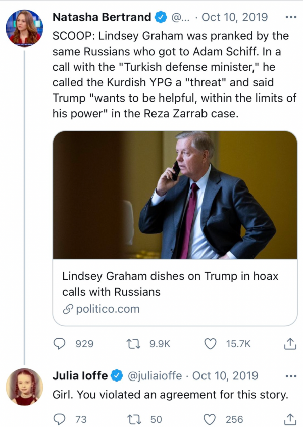 Update, Apr. 27, 2021, 4:32 pm ET: Just as several readers predicted would happen, other corporate journalists responded to this article by engaging in a rank-closing defense of Bertrand, principally by accusing me of misogyny for publishing this critique of her reporting. Unlike me, they evidently view adult professional woman in highly influential media roles (such as Bertrand) as too fragile to endure critiques of their journalism, unlike adult men, who they apparently believe are strong enough to handle criticisms: a regressive view of the sexes right out of the 1950s. They also apparently skipped over the entire first section of this article detailing how Jeffrey Goldberg and Ken Dilanian — both men — were the pioneers of the CIA-serving career trajectory Bertrand is now following. But the oddest aspect of this media reaction, the only one that makes it worth noting here, is that misogyny allegations against me for this article were led by GQ’s own Russiagate fanatic Julia Ioffe, even though Ioffe herself, in 2019, publicly accused Bertrand of a rather serious ethical violation that probably should be added to the list: